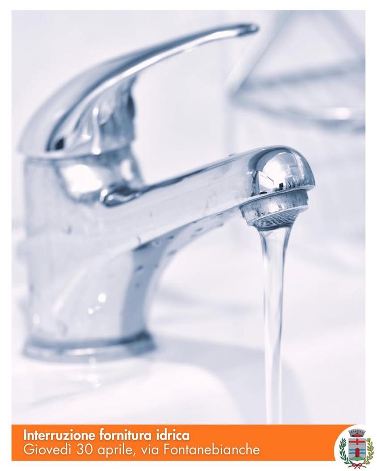 Si informano i cittadini che per lavori di miglioramento della rete idrica sarà interrotta l'erogazione dell’acqua in via Fontanebianche nella giornata di giovedì 30 aprile dalle ore 9:30 alle ore 13:00.